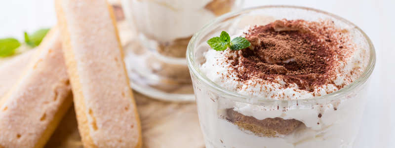 Mascarpone premiešame s vaječným likérom a potom mixérom vyšľaháme s tvarohom. Nakoniec do krému primiešame vanilkový cukor a med. V horúcej káve roztopíme na kúsky pokrájanú horkú čokoládu a potom do tejto zmesi máčame prepolené dlhé piškóty. Pripravíme si 6 dezertných pohárov. Na dno každého uložíme dve polovice namočenej piškóty, na ne navrstvíme krém a znovu piškóty a tak podobne až kým sa nám neminú ingrediencie alebo miesto v pohároch. Hotové poháre dáme aspoň na 2 hodiny do chladničky. Pred podávaním posypeme štedrou dávkou kakaa.