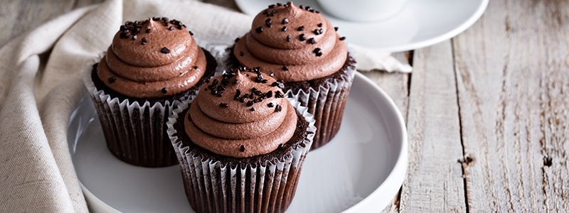 Vajce, maslo, cukor a mlieko poriadne premiešame. Pridáme múku, kakao a na kúsky nasekanú čokoládu. Košíčky na muffiny naplníme do ¾ touto zmesou. Pečieme v rúre predhriatej na 170 °C približne 15 minút až 18 minút. Zatiaľ si pripravíme čokoládovú šľahačku, tak, že smotanu vyšľaháme s kakaom a cukrom. Do šľahačky primiešame najemno nasekanú čokoládu. Upečené muffiny ozdobíme čokoládovou šľahačkou.