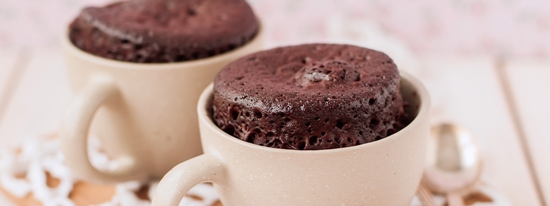 Zmiešame múku, kakao, cukor, vanilkový cukor a prášok do pečiva. Potom pridáme zvyšné ingrediencie a poriadne zamiešame. Nakoniec primiešame nakrájané kocky čokolády. Naplníme hrnček a vložíme do mikrovlnky na 90 sekúnd. Otestujeme špáradlom, ak sa cesto ešte lepí, ohrievame ďalších 20 sekúnd. Podávame s kopčekom zmrzliny alebo posypeme práškovým cukrom.