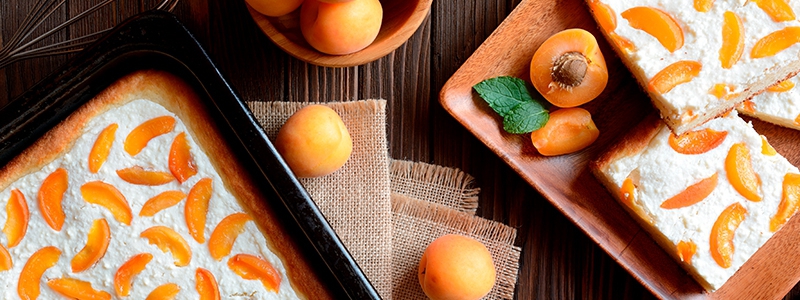 V miske zmiešame múku, štipku soli, cukor, droždie, vajce, slovenské maslo a vlažné slovenské mlieko. Cesto necháme vykysnúť v teple zakryté kuchynskou utierkou. Vykysnuté cesto rovnomerne nanesieme na vymastený plech. Slovenský tvaroh vymiešame s pudingovým práškom, citrónovou kôrou, šťavou a vajcami. Plnku nanesieme na cesto a poukladáme na ňu odkôstkované a nakrájané marhule. Pečieme v rúre predhriatej na 200 °C približne 30 minút.